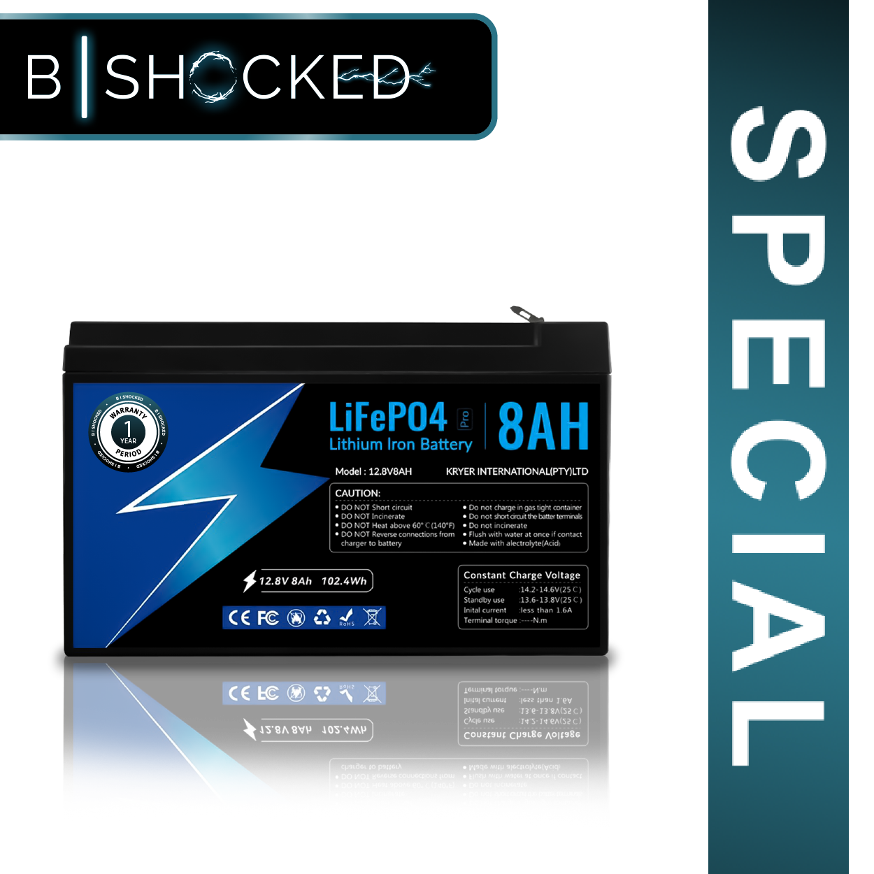 8AH 12.8V LiFePO4 Lithium Iron Battery