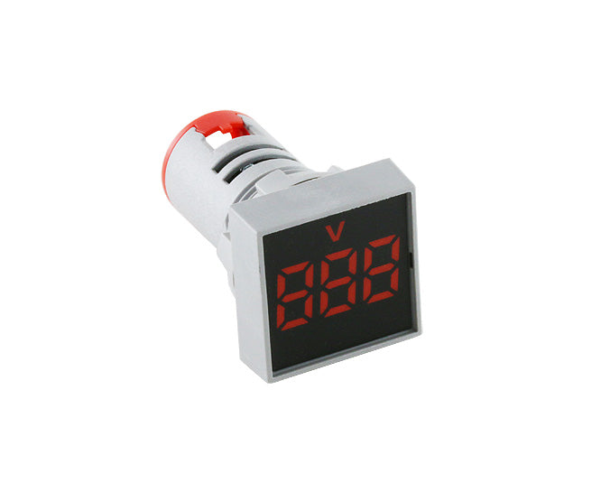 22mm PANEL MOUNT LED METER, THREE DIGIT VOLTAGE INDICATOR 15-500VAC RED, SQUARE, PILOT LIGHT TYPE