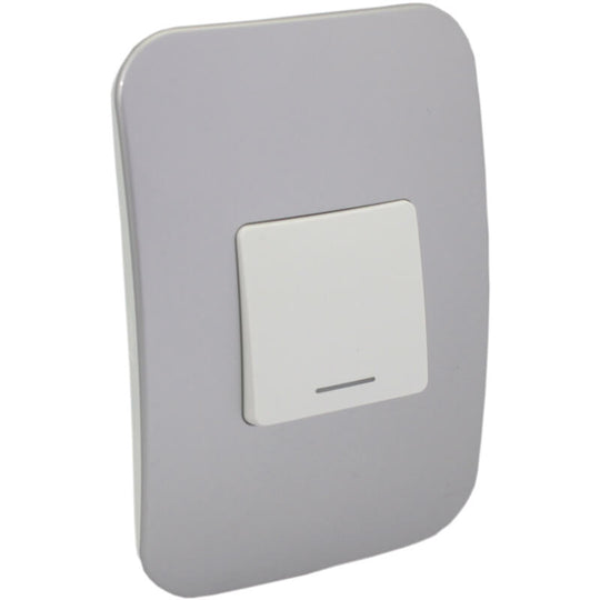 One Lever One-Way Switch (2 Mod) WT/SV With LED Locator (100mmx50mm) Vertical