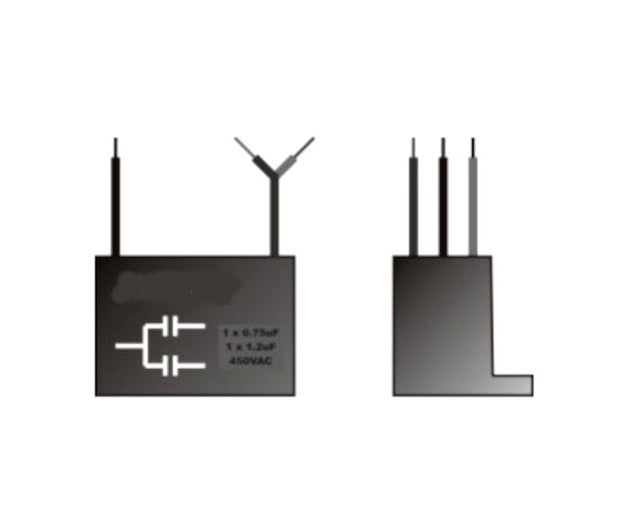 CEILING FAN CAPACITOR 0.15uF + 1.2uF 500VAC W/LEADS MAC0.15MF+1.2MF450VK