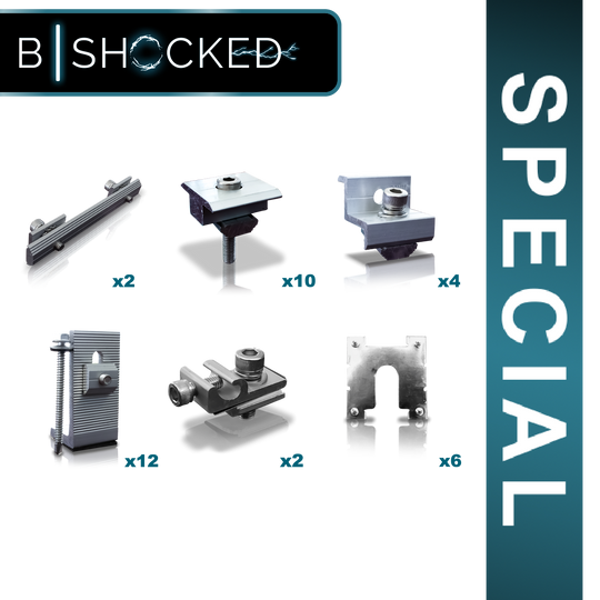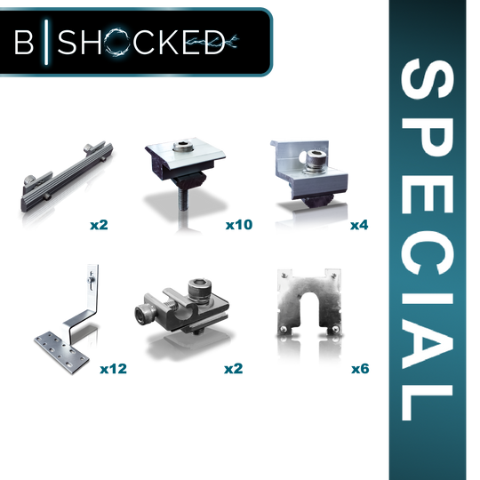 BS 1.5Kw PV Tin Roof Mounting Kit for 6 Panel No Rails Kit Includes: x2 RIIGPV-RAIL-SPLICE x10 RIIGPV-MID-30/35 x4 RIIGPV-END-30/35 x12 RIIGPV-TINRF-L x2 RIIGPV-GRD-LUG x6 RIIGPV-GRD-CLIP NOTE , Does not include mounting rail - sold separately or Order (RIIGPVTIN-KIT-6PV-BSR This Kit Includes...Regular price R 733.13Regular price R 733.13 -